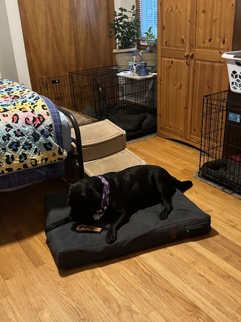 Dad gave out the birthday presents. Of course Mia got a giant chewing bone which she took away to the bedroom immediately while we waited for our toys.
